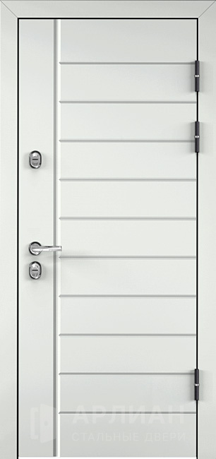 Белая матовая входная дверь с молдингом №23