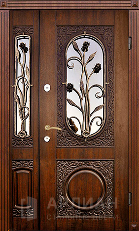 Полуторная стальная дверь массив №50