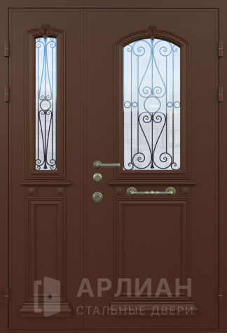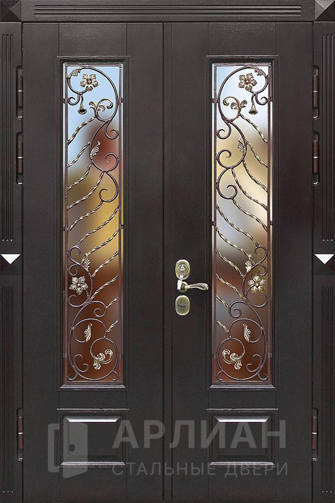 Входная дверь с ковкой и стеклом №414
