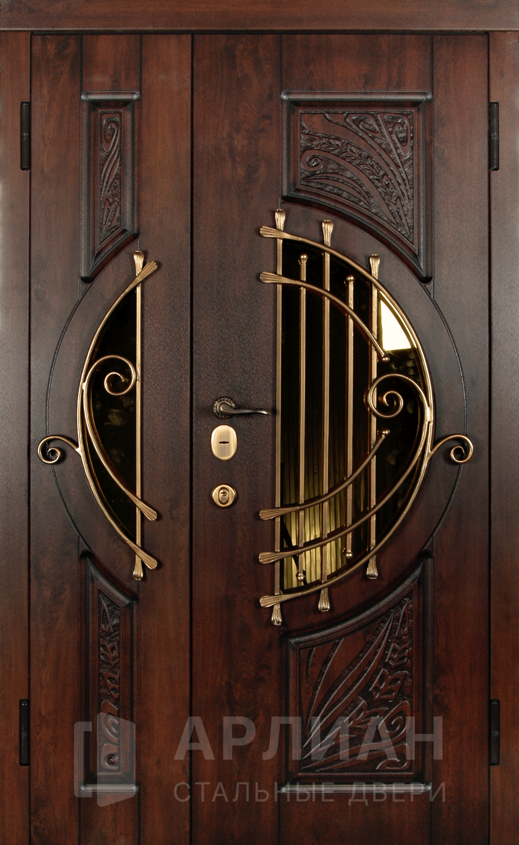 Арочная металлическая дверь с коваными элементами №1