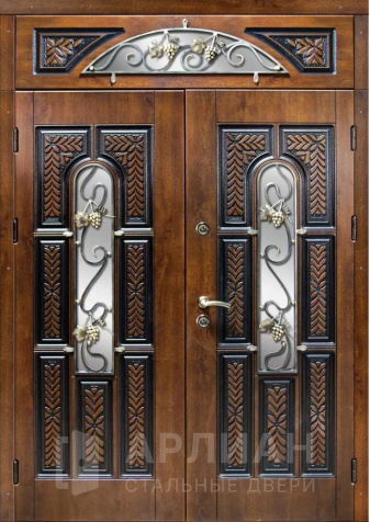 Высокая арочная дверь с фрамугой и кованой решеткой №12