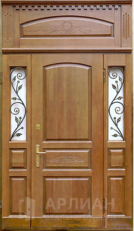 Входная дверь для загородного дома с коваными элементами №115