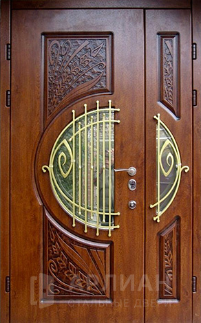 Входная дверь для загородного дома с коваными элементами №115
